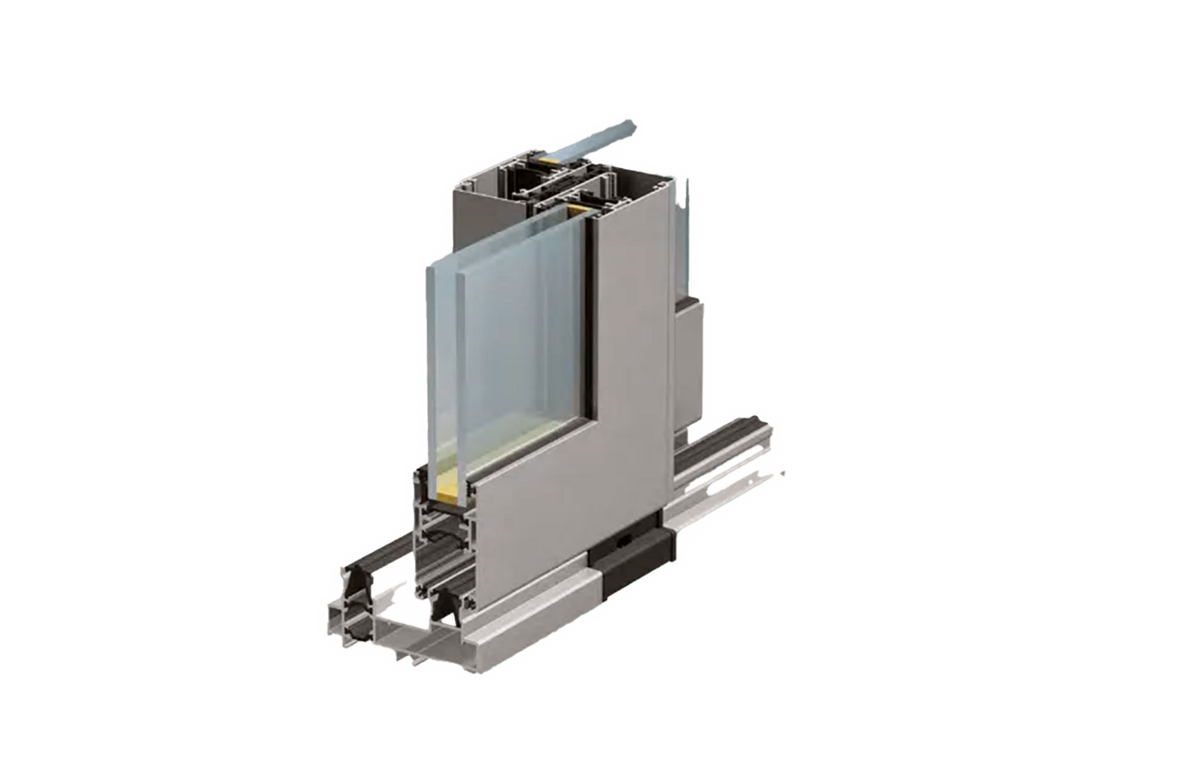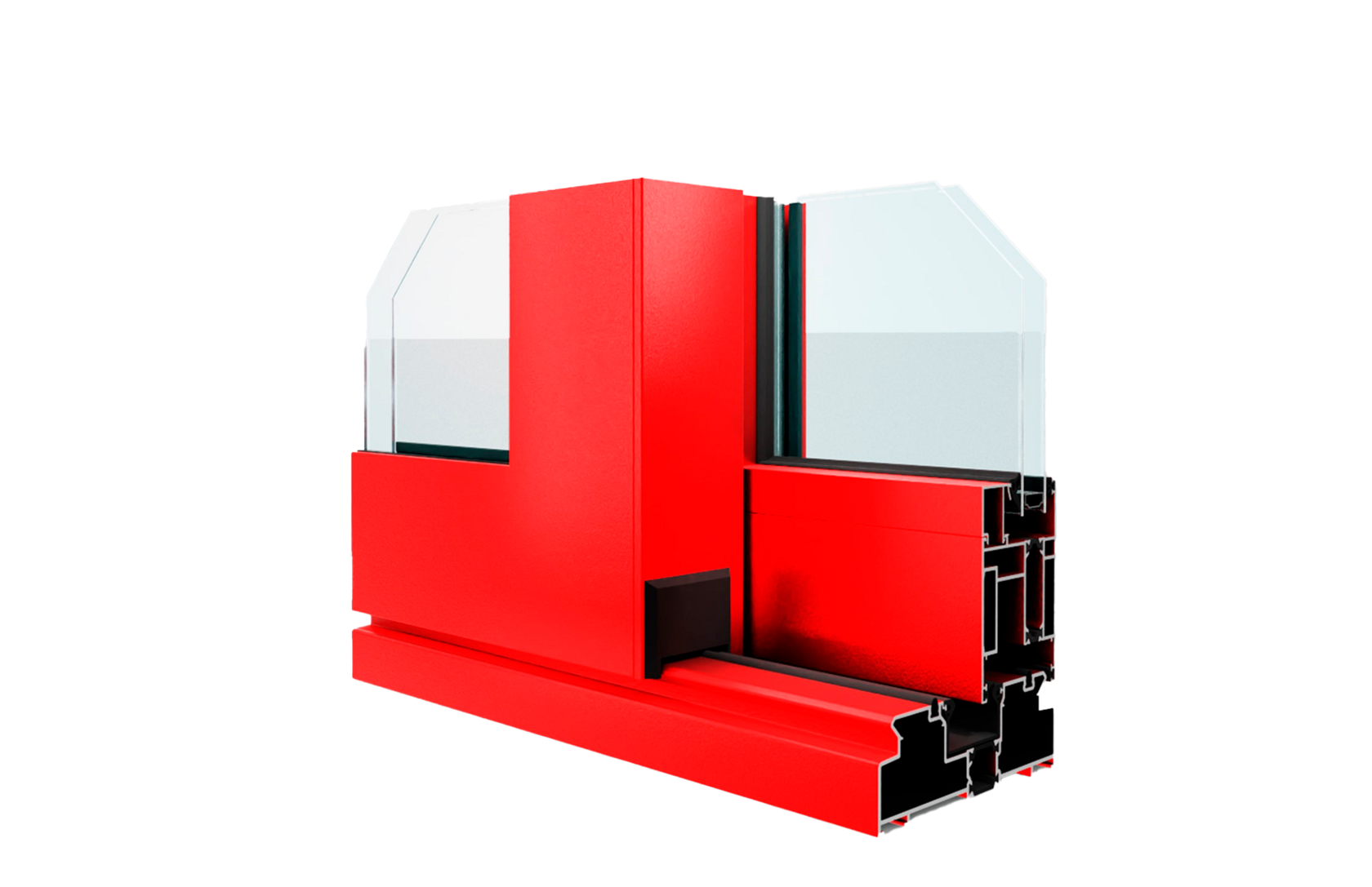 Оконно - дверная система шумо и термо изолированных профилей для создания оконных блоков, витражей, входных групп с различными варианты исполнения : ленточное остекление, оконные рамы со штульпом и импостом, прямые и со скруглением профили створок, глухие, скрытые и вентиляционные створки, витражи в проем высотой до 5 м. и с поворотом на различные углы.
